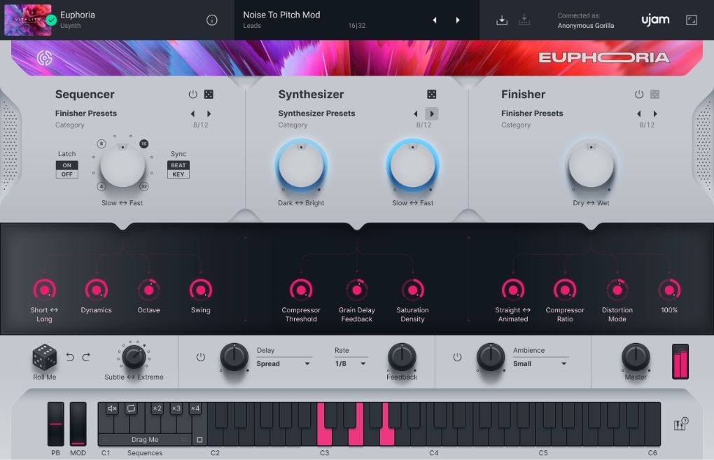 『USYNTH EUPHORIA』は、感情豊かなEDMサウンドを瞬く間に生み出すシンセ。多くの複雑なツールを使うことなく、メロディックなダブステップやチルホップのサウンドを生成することが可能です。誰でも手軽に使えて、よりはやくより良いサウンドへ辿り着ける。それがUJAMが提唱する新しいシンセ 『USYNTH EUPHORIA』です。