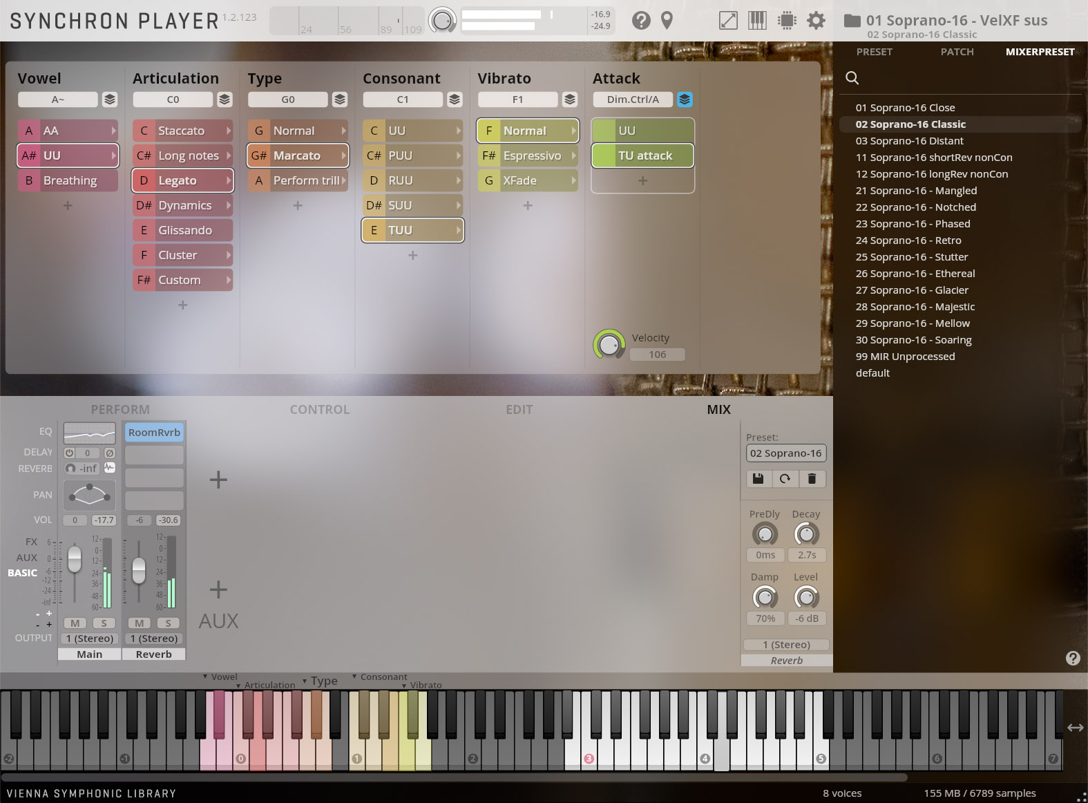 ソプラノ・アンサンブルのスタッカート、長音(サスティン/レガート)、抑揚(クレッシェンド/ディミヌエンド/フォルテピアノ/スフォルツァート)といったパッチ&アーティキュレーションを取りまとめたライブラリです。